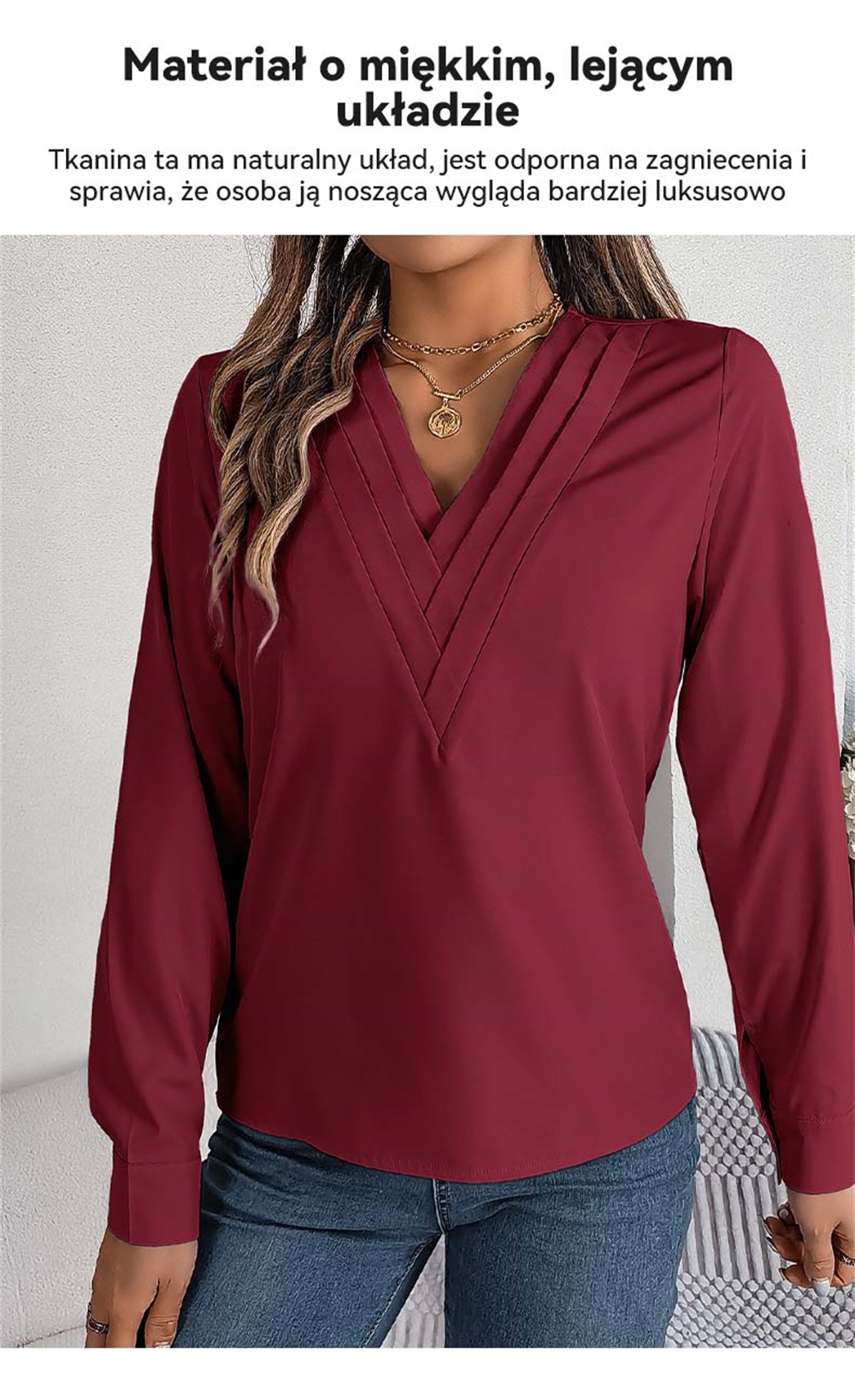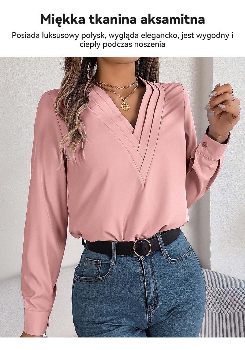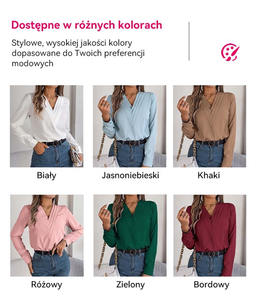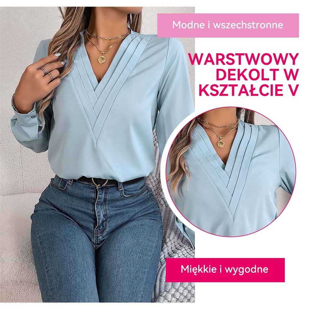 ✨Elegancka damska koszula w jednolitym kolorze z warstwowym dekoltem V na jesień i zimę 2025