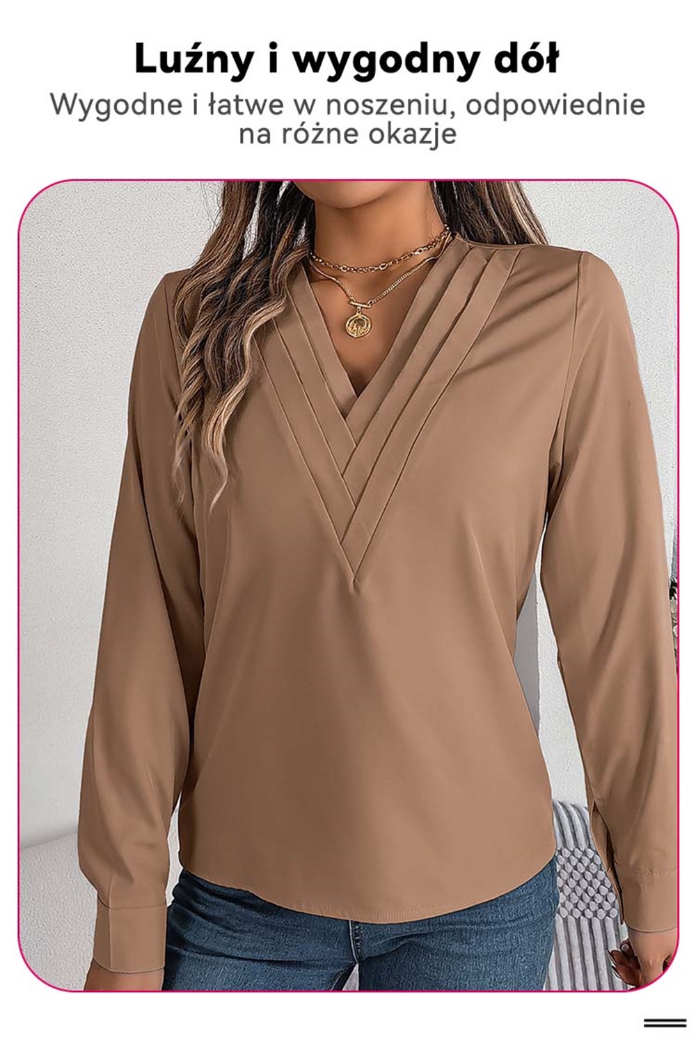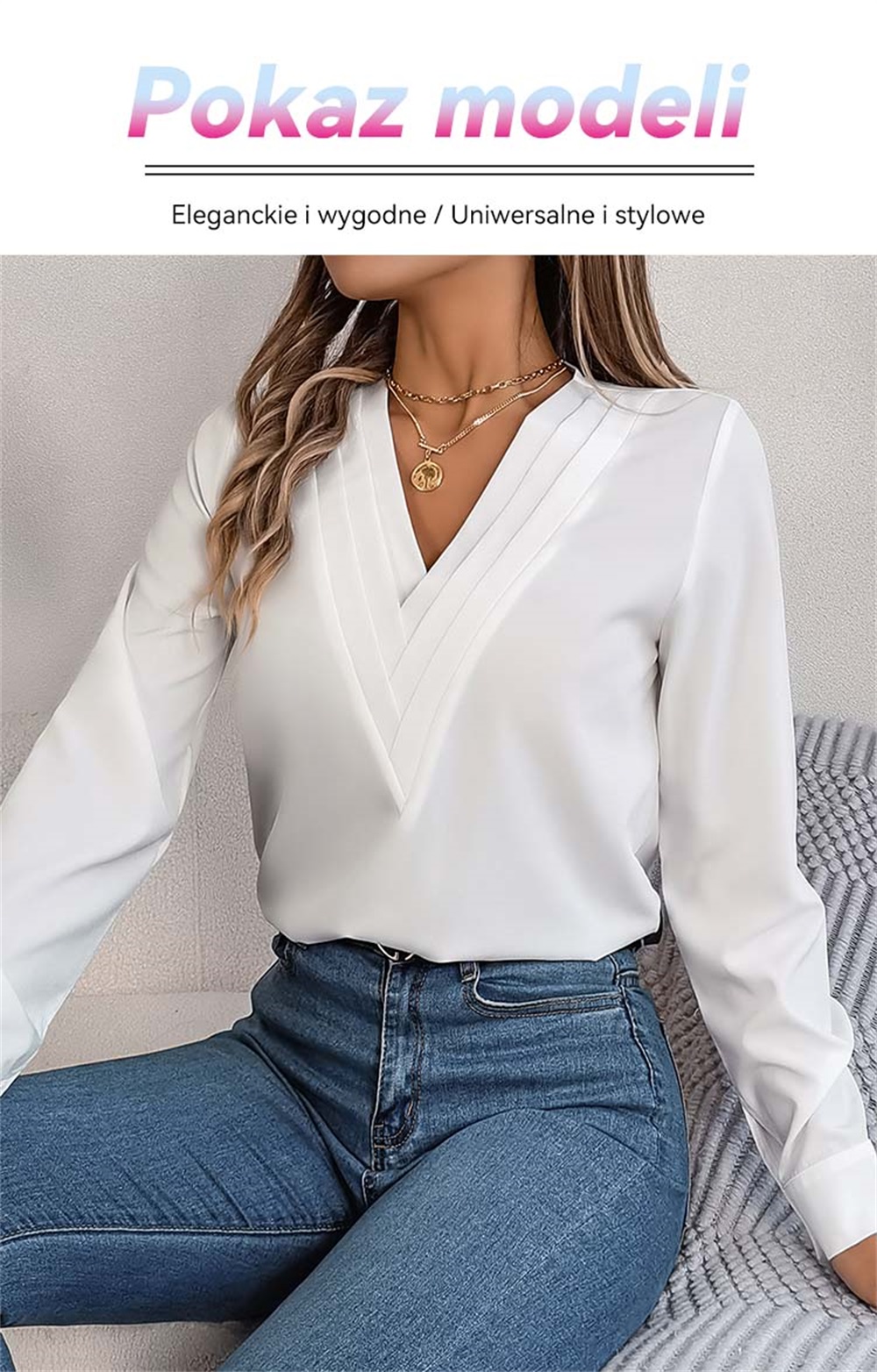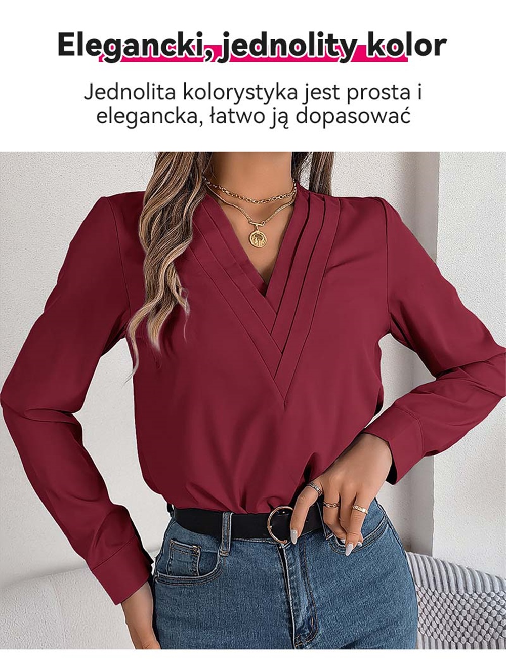 ✨Elegancka damska koszula w jednolitym kolorze z warstwowym dekoltem V na jesień i zimę 2025