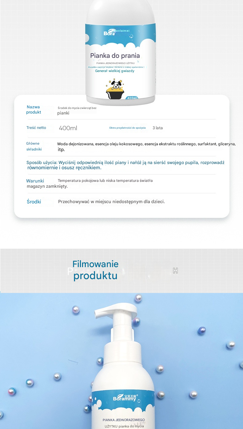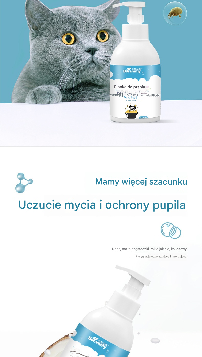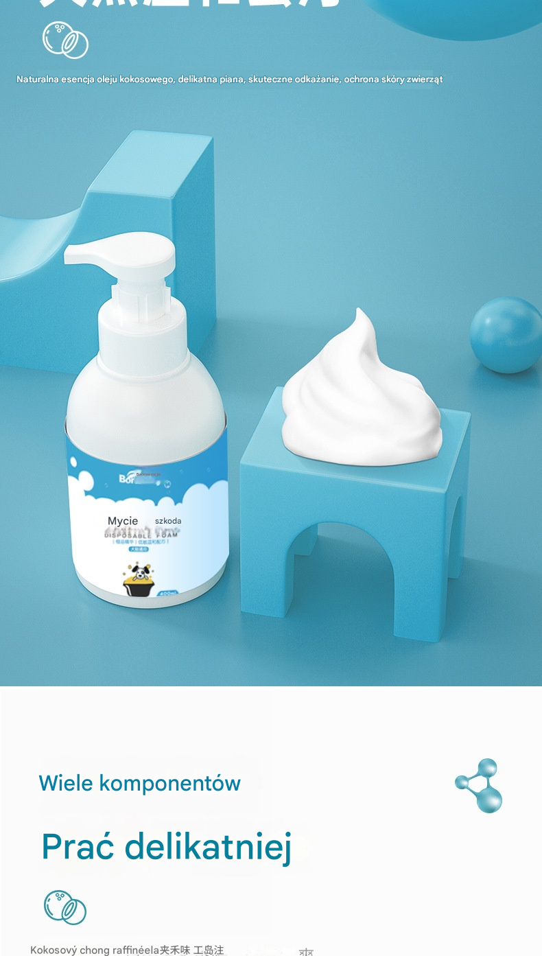 🐱🐈 Delikatna pianka dezodorująca na bazie roślin dla zwierząt, szampony dla zwierząt
