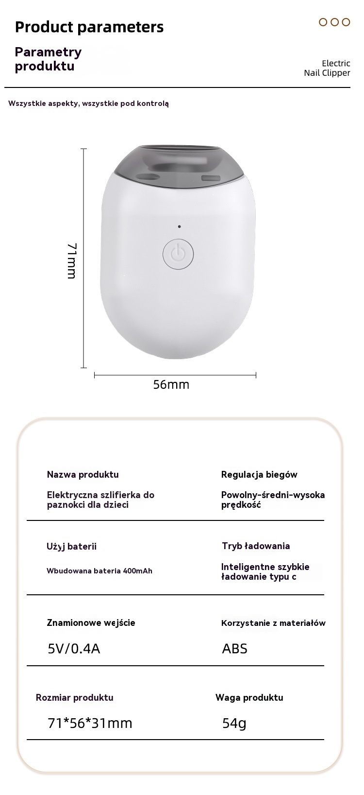 💅 Kup 1 sztukę i otrzymaj 1 za darmo! ✨ Automatyczny pilnik do paznokci (1 sztuka) do bezpiecznej i delikatnej pielęgnacji paznokci 👶