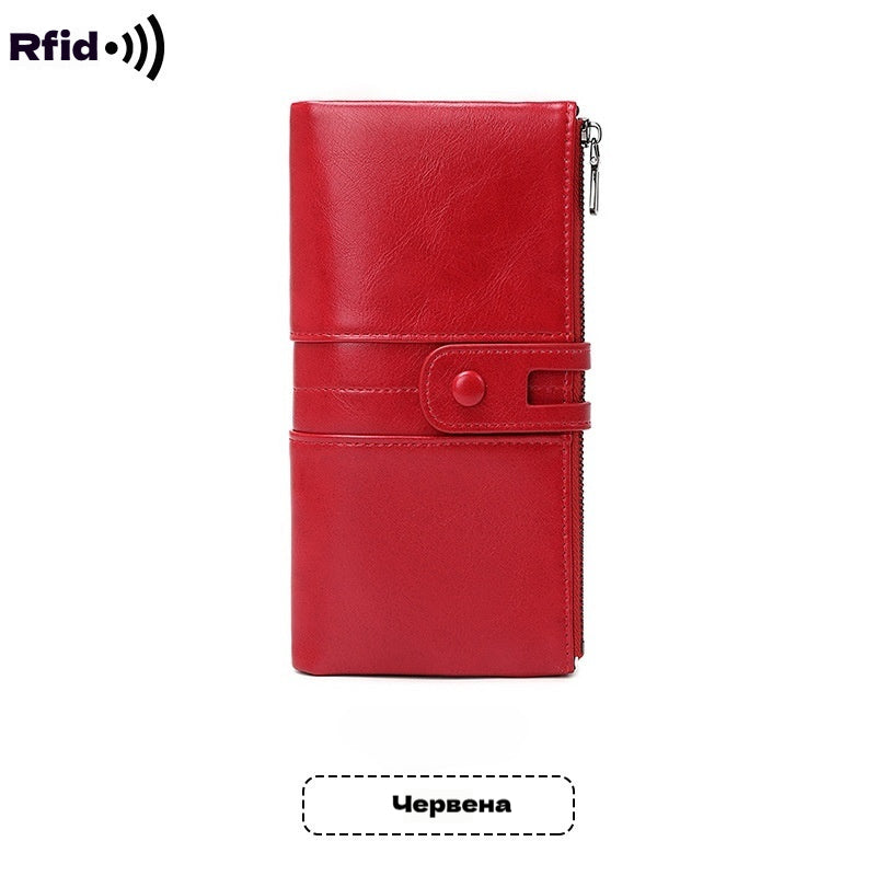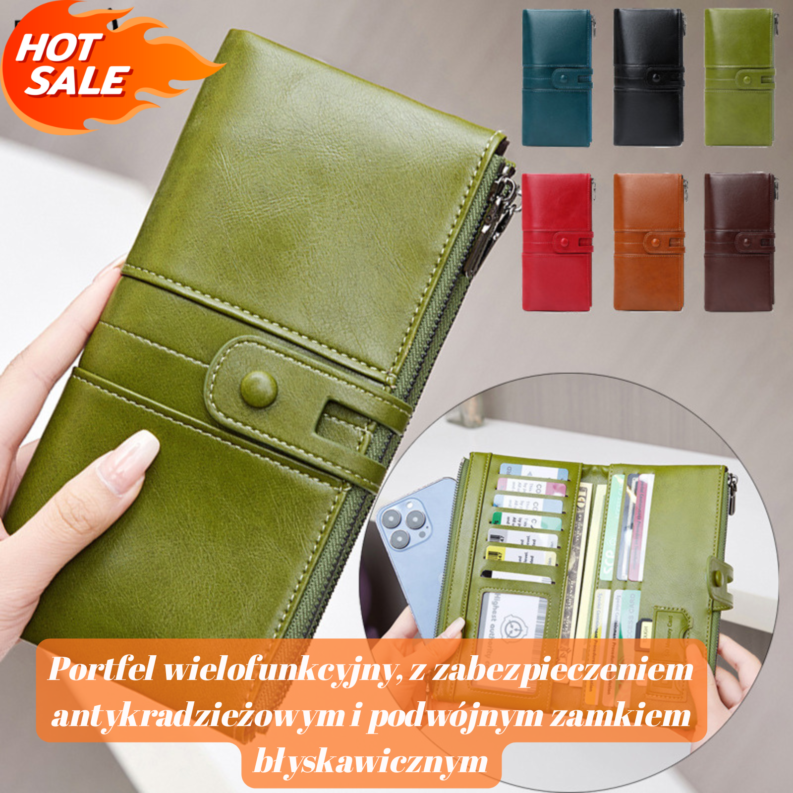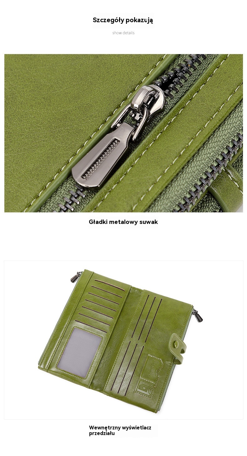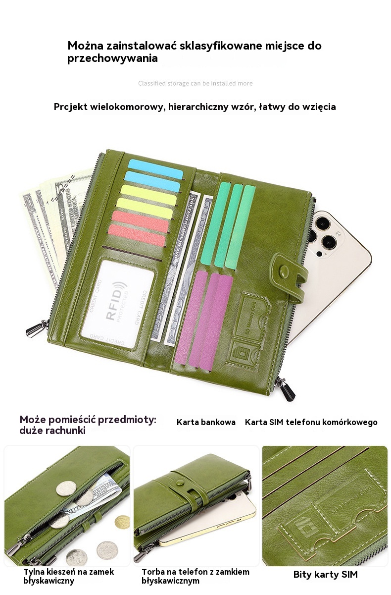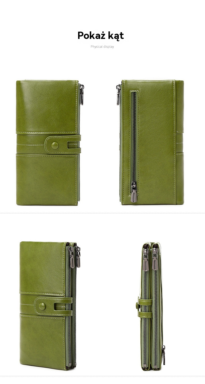 💼Wielofunkcyjny portfel, ręcznie wykonany ze skóry, szczotka antykradzieżowa, podwójny zamek błyskawiczny