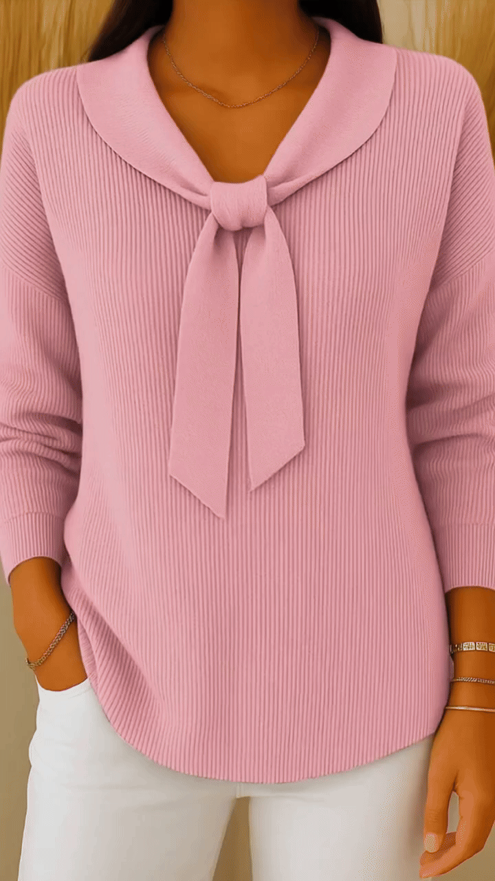 【S-2XL】Sweter damski w jednolitym kolorze z wiązaniem i długim rękawem, swobodny i luźny